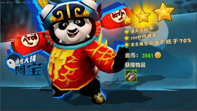 如果《功夫熊猫3》玩家全部三星通关还可以额外获得元宝和其他物品奖励哦!