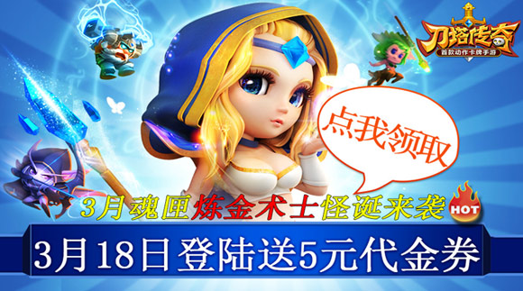 即日起(18日23:59分前登录游戏的用户都可以领取一张5元代金券,可直接在充值时顶替充值金额哦!