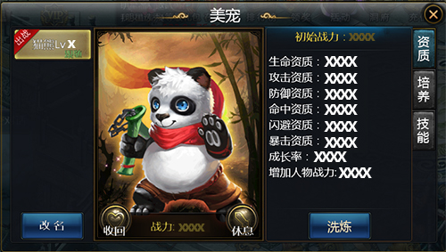 《神魔》宠物一般带有普通攻击和手动技能。原画中猫熊宠所摆pose正是双节棍经典招式“毒蛇吐信”,那它的普通技能应该就是以此为原型,该招式能连续攻击对方头肩等部位造成重创。而手动技能难道是高速旋转双节棍扔飞出去,360度旋转造成大范围攻击?我建议,猫熊宠应该充分利用“圆滚滚”的身体条件,学习周星驰的“人肉风火轮”,直接把敌方推倒,都说胖子不能小看吧!