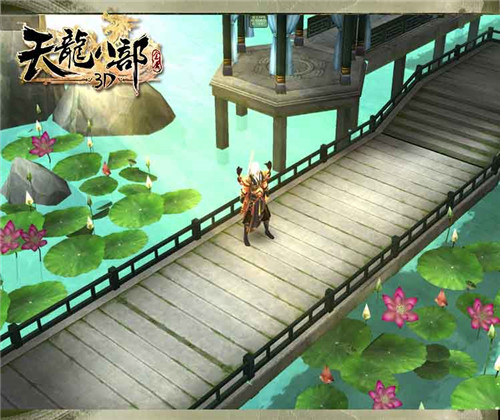 淡然也可以坐看小桥流水庭前落花的燕子坞中一袭青衣撑篙渡船的女子身影与波光粼粼的湖水共长天一色,在少室山下仰望青山劲松,挥斥苍穹的霸气和千年古刹少林寺的相得益彰。《天龙八部3D》游戏中也有着对应的细致场景把原著中的环境细节全部描绘出来。