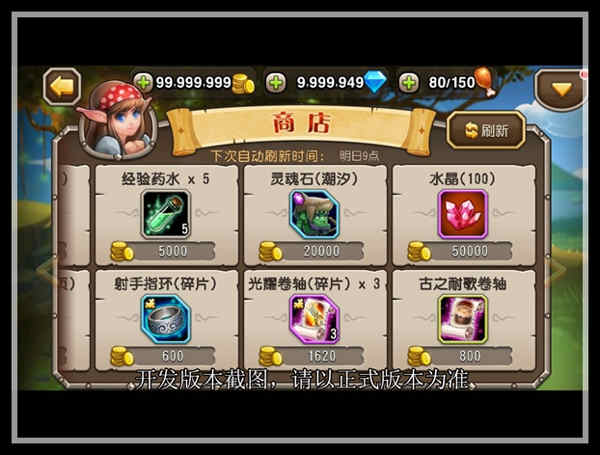 左侧便是所获得的魔法书,魔法书需要不同种类的魔法书碎片进行合成,这些碎片可以在指定的精英关卡里获得,也能在商店里进行购买,或者在升级战队领地中的建筑,完成要求的任务中获得。解锁战队领地的队长看到的商店为8格。