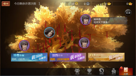 大侠在祈愿面板可以自主选择祈愿方式,根据方式的不同,祈愿后获得的贡献值分为:300、400、500不等,每位大侠每天只能祈愿1次!