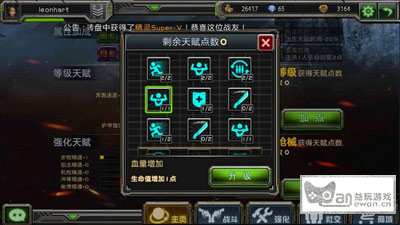 首先我们先来了解一下等级天赋系统。玩家等级每提升一级可以获得一个等级天赋点。等级天赋点可以在“主页”——“天赋”——“等级天赋”处使用,用于提升人物的各项能力,升级了却没加点的玩家一定要注意别浪费了这个机会。点击等级天赋一栏的“加点”按钮即可打开等级天赋菜单。点击对应的图标,查看提升效果说明,然后选中喜欢的属性点击升级即可完成加点。
