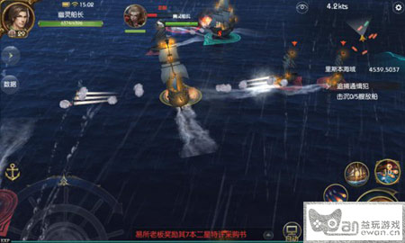 战斗中玩家通过左侧的方向键来控制战船的移动和技能释放的方向。玩家使用右侧的攻击键可用来控制战船两侧的炮台进行攻击。通过按住攻击键来增加炮弹的射程和范围,瞄准则是需要左侧的移动键来控制,系统就会自动选择战船两侧的炮台进行攻击。操作起来非常的简单方便,玩家可以无压力的零门槛上手。