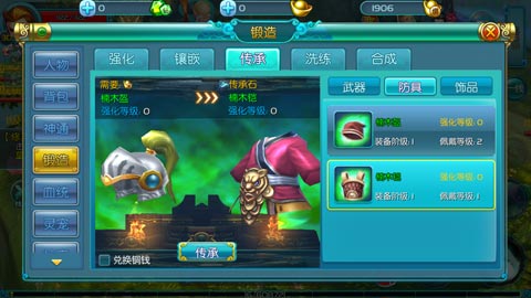 装备传承可以将玩家强化到一定级的装备,强化等级全部转移到另一件装备上面。而且是100%成功。
